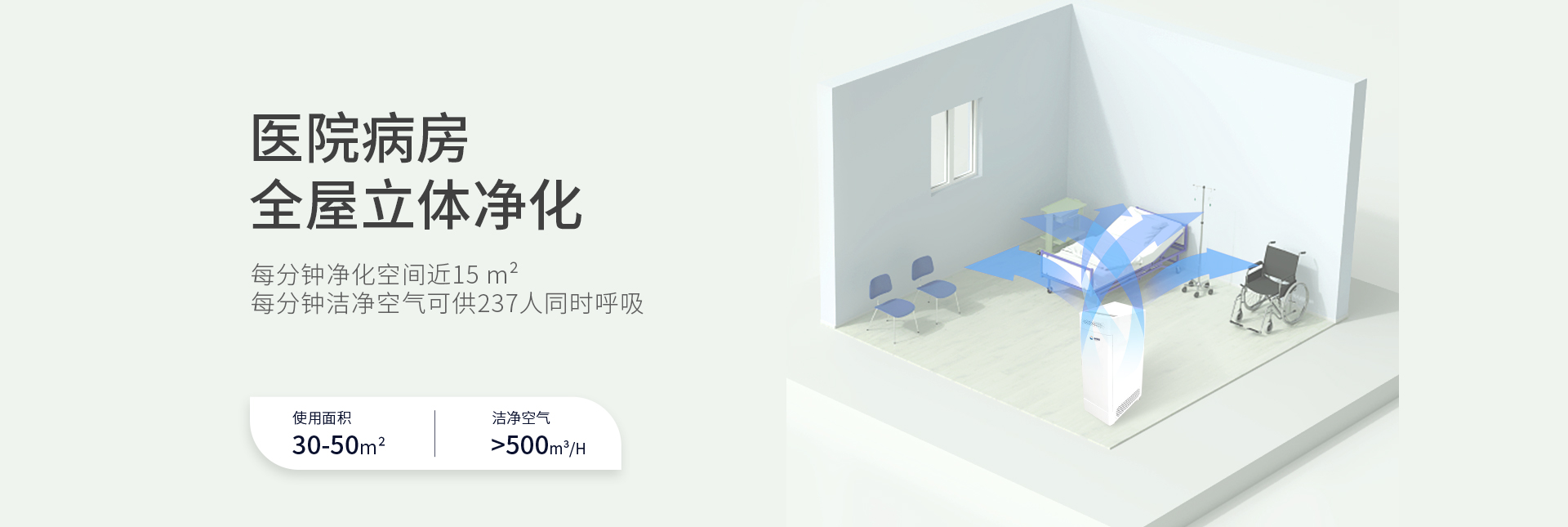 | 使用面积 | 30㎡ | 洁净空气 | >500m³/H |